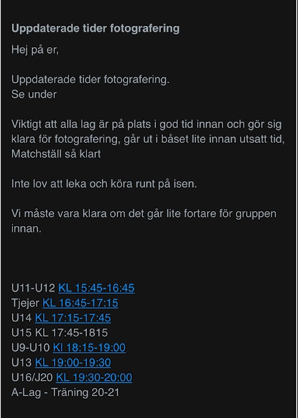 Klicka på bekräftelselänken i det mejl vi skickat dig för att börja ta emot uppdateringar från Säters IF Hockey U10 Team 16.
