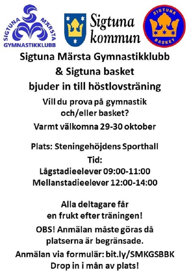 Välkomna till Höstlovsträning tisdag & onsdag i Steningehallen. Anmäl om ni kommer på www.bit.ly/smgksbbk Basketskola 2016/2017 22 okt 2019 0kommentarer