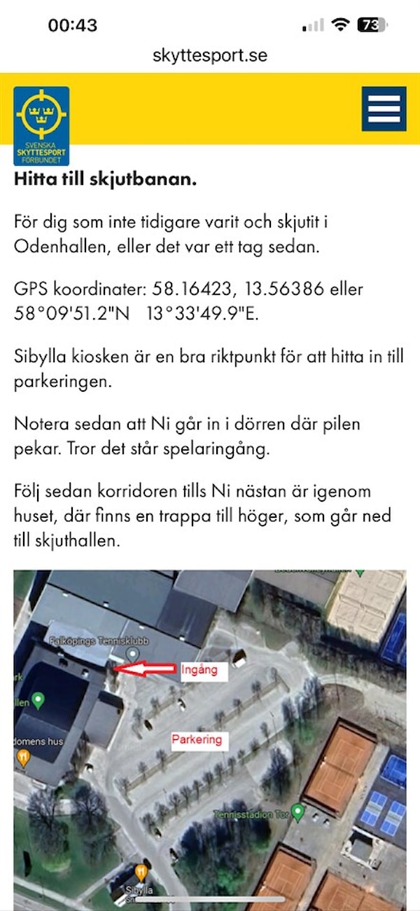 Här kommer adressen och information om var skyttiaden kommer att hållas nu på lördag i Falköping för oss 12 som ska skjuta där.