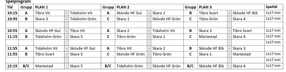 Spelschema finns med som bild i detta inlägg.