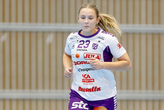 På söndagen var Skara HF:s junior- och U-lag igång hemma i Idrottshallen. Det blev vinst för juniorlaget mot GF Kroppskultur med 24-19. U-lagsmötet med BK Heid slutade 20-39 (10-19) där Stella Stark (bilden) var HF:s främsta målskytt. Lisen Gustafsson summerar matcherna: -Det var skönt med en vinst för juniorerna och att få spela match efter två flyttade seriematcher. Det var en stabil insats där vi kommer till bra lägen i fart framåt. Inställningen i försvarsspelet var också god. Målskyttar: Isabelle Johansson Kihlström 8, Elisa Norberg 5, Moa Larsson 4, Hanna Gyltman 3, Natlie Andersson 3, Emilia Påhlman 1. Tufft för U-laget För U-laget blev det en tuff match mot ett starkt BK Heid. Vi kommer inte riktigt upp i nivå i försvarsspelet och straffas hårt av deras tempo och avslut. Framåt har vi perioder där vi hittar bra lösningar, men vi behöver vara mer konsekventa. Trots en bra start i andra halvlek drar Heid ifrån oss. Vi vet att vi behöver träna på framöver och kommer tillbaka starkare. Målskyttar: Stella Stark 5, Isabelle Kihlström 4, Alva Forsbom 3, Amanda Johansson 3, Elin Börjesson 2, Anna Steen, Moa Larsson och Nathalie Andersson 1 var.