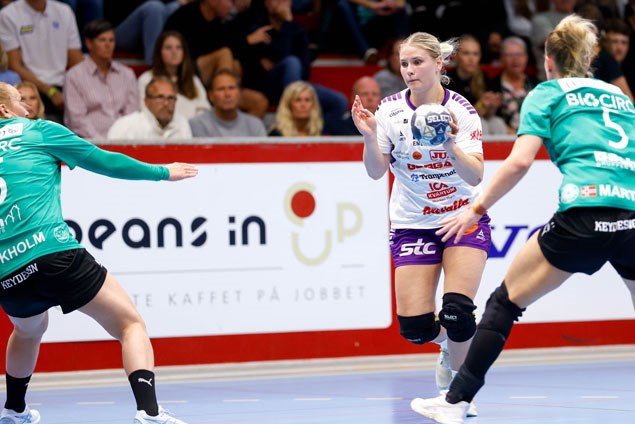 Annliz cup i Skövde inleddes knackigt för Skara HF vid mötet med danska elitklubben Viborg HK. I första halvlek spelade Skara som om det inte varit ett sommaruppehåll efter SM-segern men desto kärvare blev det i andra halvlek. Resultatsiffrorna visar besked. Efter första halvlek hade Skara ledningen med 17-15 efter att ha haft övertaget hela halvleken. I andra halvan av matchen blev det en helt annan sak. Det krackelerade såväl framåt som bakåt och i den andra akten noterades Viborg för 17 mål mot Skaras ynkliga åtta. Det innebar en slutlig förlust med 35-25. Isländskt utropstecken Matchens stora utropstecken var nyförvärvet från Island Lena Valdimarsdottir(bilden ovan). Hon kom in efter en kvart i första halvlek, fick mycket speltid och stod sen för fyra mål och flera assist. Hon bäddade dessutom för många fina lägen för sina lagkamrater. Lena själv var glad över att hennes svenska premiär var över. Så här kommenterade hon: -Jag tycker att vi bitvis gjorde många bra saker och jag känner att vi har något riktigt bra på gång. I den här första matchen tappade vi fokus i andra halvlek och det fungerade inte som jag redan vet att vi kan. Inte helt nöjd Om sin egen insats är Skara HF:s nya högernia mer blygsam: -Jag är inte nöjd med mitt försvarsarbete idag men det är förstås roligt att kunna bidra i matchen. Fyra mål är okej och vad det gäller att sätta andra i lägen hoppas och tror jag att det är något vi tillsammans kan utveckla ännu mer. Ny match på fredag Redan på fredagen är det dags för ännu en match i Annliz cup. På torsdagskvällen hade ett drygt hundratal Skarasupportrar begett sig till Skövde. Det blir säkert ännu fler när Skara HF på fredagskvällen i Skövde Idrottshall möter lokalkonkurrenten Skövde HF. Avkast klockan 19.30. Räkna med att de lila är revanschsugna!! Målskyttar Skara HF: Melanie Felber 7, Lena Valdimarsdottir 4, Evi Jaspers 3, Aldis Heimisdottir 3, Ellen Aronsson 2, Meja Norrgård 2, Natascha Buhl 2, Linnea Säreborn och Emma Gyltman 1 var. Viborgs främsta målskytt var Sara Hald med tio mål. Mot slutet av matchen noterades även förra Skövdespelaren Elma Örtemark för några fullträffar. Text: Annika Andersson Foto Viktor Ljungström