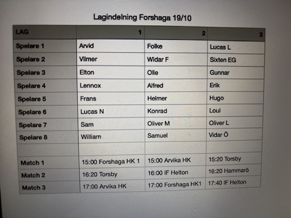 Här kommer lagindelningen, var gärna på plats 20min före första matchen för ditt lag.