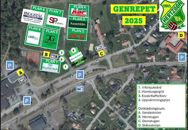 Vi samlas vid uppvärmningsplanen (se bild) kl. 11:00.