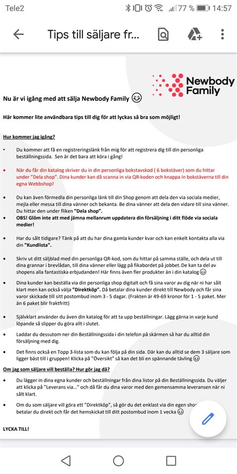 Försäljning av Newbody