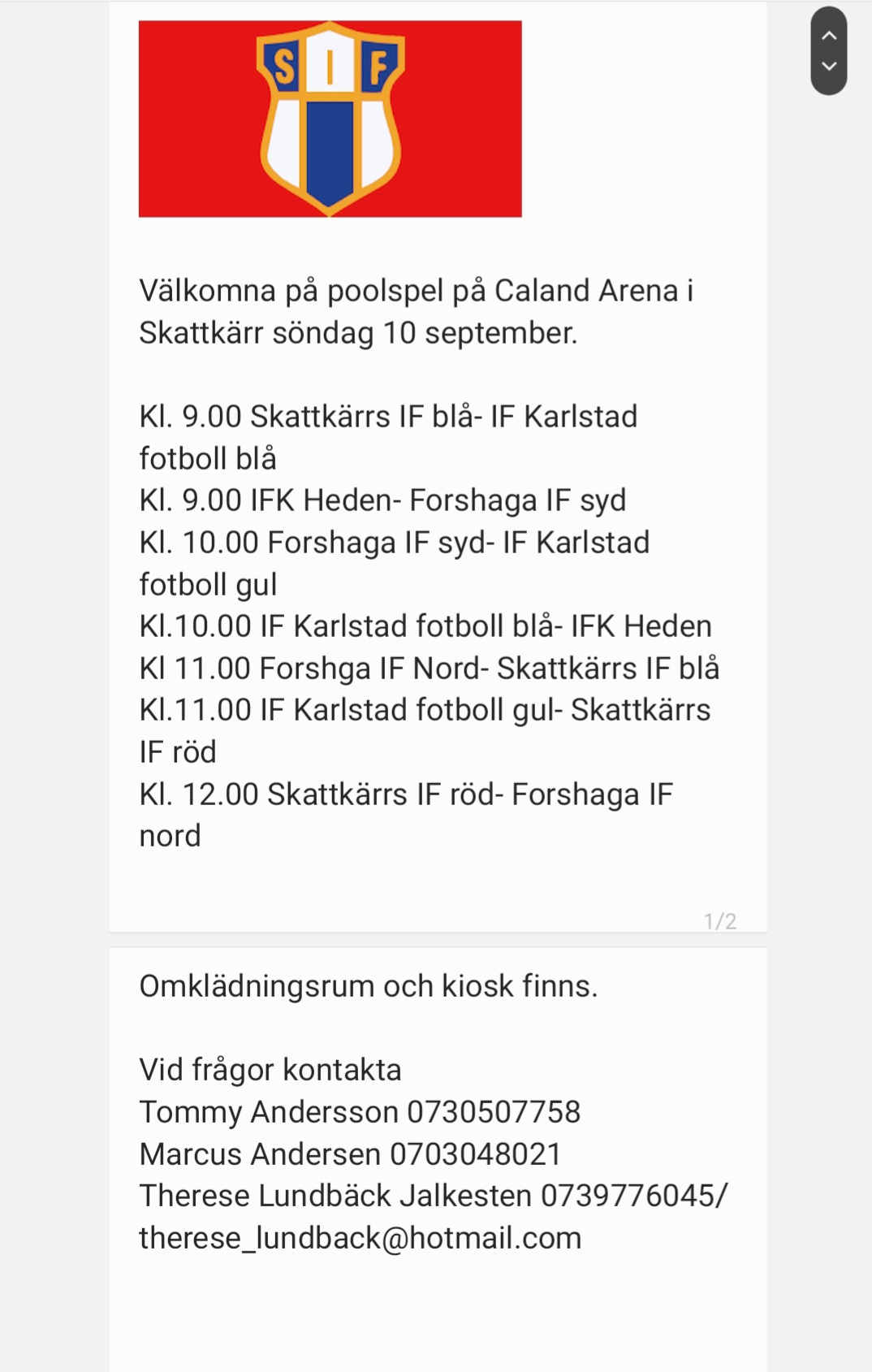 Klicka på bekräftelselänken i det mejl vi skickat dig för att börja ta emot uppdateringar från Skattkärrs IF P-14.
