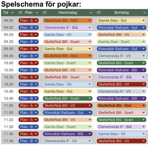 Bifogat finns spelschemat.