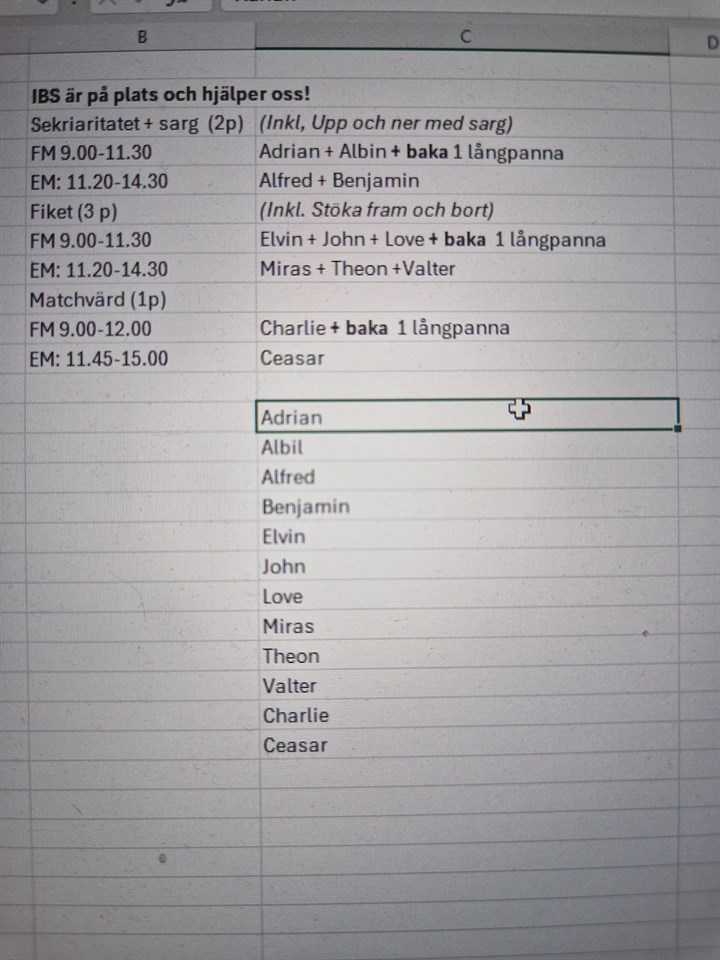 Vi har tagit fram ett arbetsschema, se bifogad bild. Byt sinsemellan om någon annan tid passar bättre. Kontaktuppgifter finns här på laget.se