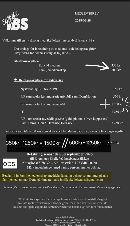Vi spelar röd serie i år och avgiften ser ni i bifogad fil!
