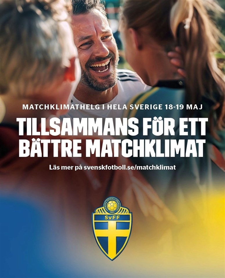 Tillsammans för ett bättre matchklimat Svensk fotboll är överens: vi ska tillsammans verka för ett bättre matchklimat på alla nivåer! Från de allra yngsta som spelar sina första matcher till elitmatcherna som spelas inför tiotusentals supportrar på läktarna. Svensk fotboll kommer gemensamt manifestera för ett bättre matchklimat med avstamp i två helger under året. Under helgerna 18-19 maj samt 7-8 september kommer svensk fotboll att på olika sätt samlas kring arenor, anläggningar och fotbollsplaner för att verka för ett bättre matchklimat.