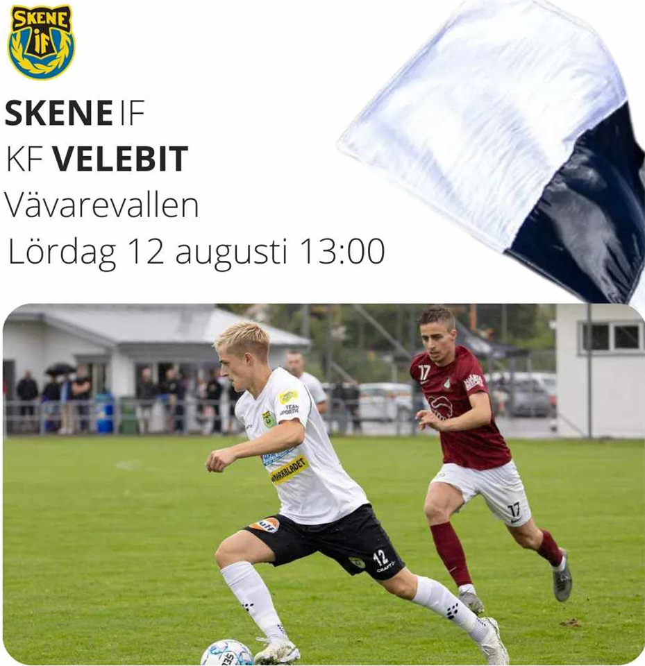 Omgång 14 och höstsäsongens första seriematch spelas hemma på lördag och det är KF Velebit från Göteborg som besöker Vävarevallen. Bortalaget startade upp hösten men en förlust förra helgen då de föll mot Angered BK med 5-2. Inför denna omgången placerar vi oss på en fin 5:e plats i tabellen med en poäng mer är gästande Velebit. Upp till tredje plats skiljer det endast 1 pinne och för tillfället är det Hestrafors som innehar denna position. Vårmötet på Bravida Arena vann bortalaget relativt enkelt med 3-1 efter en svag insats från vår sida. 0-0 i halvlek var okay men i andra satte vi oss i dumma lägen samt att Elias Häger blev utvisad gjorde det svårt att vända matchen till seger. Hemmalaget vann helt rättvist så till denna fight vill vi revansch. I gästande KF Velebit spelar en välkänd spelare inom Mark fotbollen och det är vår egen produkt Fehim Smaljovic som gjort många matcher i Skene tröjan. Sist Fehim spelade hos oss var säsongen 2020 då han var en stor bidragande faktor att vi tog steget upp till div 3. Vi själva har kört på ordentligt efter ledigheten under juli och en bra match i ryggen efter förra helgens vinst mot Stafsinge IF nere i Falkenberg. Nästan samtliga i truppen är tillgängliga förutom Adis Sahman (resa) och Malte Asplind och Elias Helgesson inte hundra efter skador. Enligt väderprognoserna kommer vädret vara med oss kommande dagar då sol och lite blåst gör att Vävarevallens gräsplan kommer vara i ett gott skick till lördagens match. Vi hoppas verkligen på mycket support från sidan som hjälper killarna att fixa tre nya pinnar! Spelplats: Vävarevallen, Skene. Avspark: 13:00 Trupp, mål och lite kommentarer skrivs löpande under matchen på Min Fotboll. Välkomna!