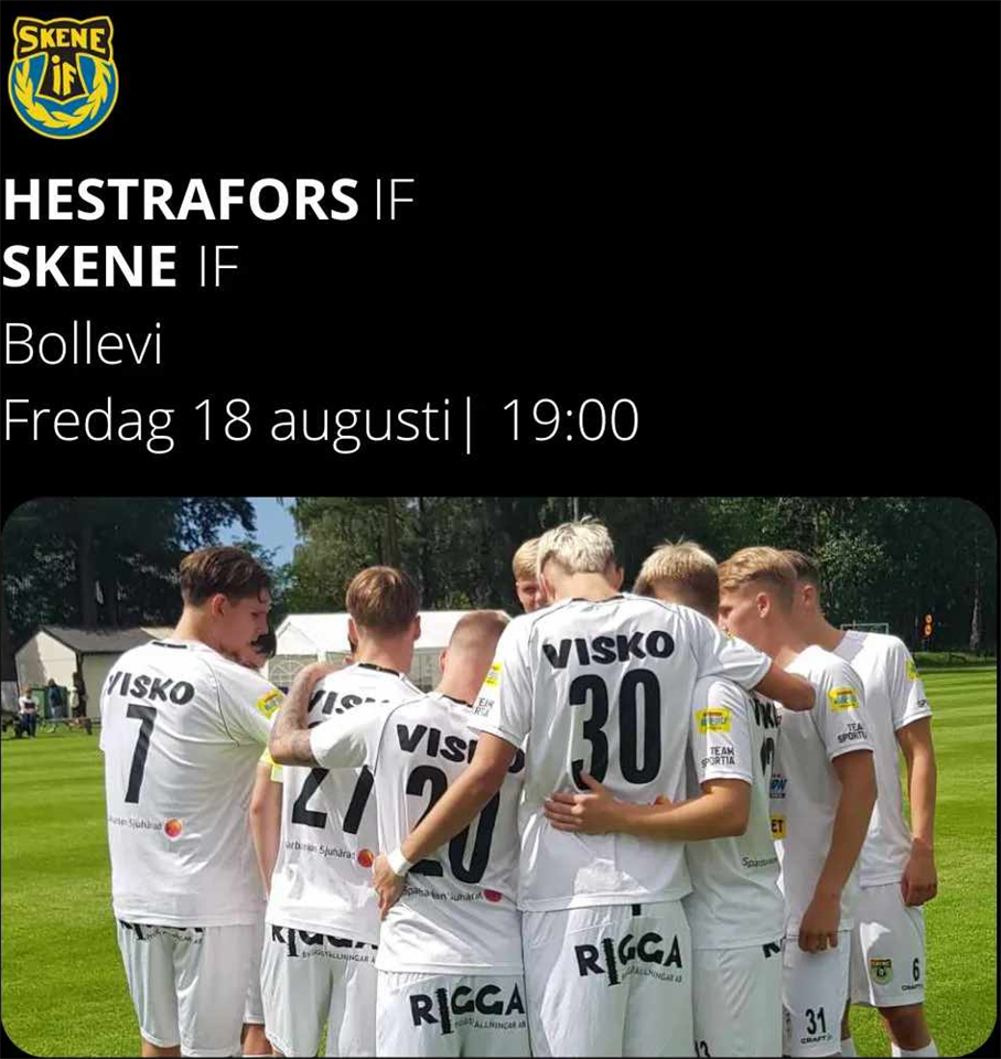 Vi är tillbaka med uppsnacket inför matchen mot Hestrafors. Denna gången är det senaste nyförvärvet Malte Nydén som vi fått en pratstund med. Hestrafors parkerar två platser och två poäng före Skene IF i tabellen där "vi" fortfarande har häng på en tredjeplats. 1: Blytung förlust i återuppstarten som jag tyvärr missade. Vad hände vid det avgörande målet, var det något som går att tillskriva orutin från er sida eller var det helt enkelt bra gjort av Velebit? Jag tyckte att det sista målet beror på slarv i arbete/hemjobb då vi totalt tappat den gubben som kommer fri och gör mål. Då vi försöker sätta tryck och göra mål så kommer det ske kontringar när de har skickliga spelare och då måste vi vara med och jobba. 2: Det låter inte acceptabelt i min värld att man inte tar hemjobbet vid ställning 2-2 och endast någon minut kvar av matchen! Vem har ni i laget som kravställare som sätter nivån för den typen av inställning? Jag ser det inte som något problem med arbetsinsatsen i laget normalt sett. Detta var en engångsföreteelse som jag ser det. Jag tycker Alfons tar stort ansvar när det kommer till att sätta krav på varandra på träning och match. 3: Vad var det som gjorde att du valde att flytta till Skene IF mitt under säsongen? Det var flera anledningar. Dels ville jag spela mer då det var lite trögt i GIF, dels lockade det att spela med Pelle och kompisarna från ungdomstiden igen, och dels för att jag flyttar hem till Kinna under tiden igen för plugg i Göteborg till hösten. 4: Vad tycker du själv att du ska bidra med under matcherna? Jag är ingen poängspelare direkt. Men jag vill bidra med ett lugn på mittfältet med boll. En spelare som kan dra ner på tempot samt öka tempot om matchen kräver. Sen kanske en och annan hockeyassist. 5: Vad vet ni om Hestrafors? Något som blir extra viktigt? Jag har faktiskt inte så bra koll förutom att de ligger på ungefär samma poäng som oss vilket gör det viktigt för oss att vinna matchen helt enkelt. Ha ett annat ”go” än förra matchen och visa hjärta blandat med den fina kvalité vi besitter när vi väl spelar bollen. 6: Avslutningsvis, vem TROR att den är roligast i omklädningsrummet? David Lundin helt klart.