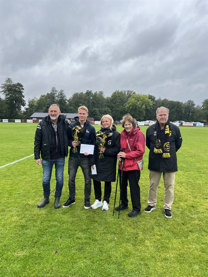 Följ oss för uppdateringarI halvtidsvilan på lördagens damlagsmatch delades utmärkelsen Årets SBTK-kamrat till minne av Bernt-Åke Olofsson ut till Kim Bergström och Elsa Nielsen. Prisutdelare var Bent-Åkes syster Marianne Johansson och systersonen Anders Johansson. På bilden ovan omges pristagarna av Marianne och Anders samt ordförande Gerhard Sager.