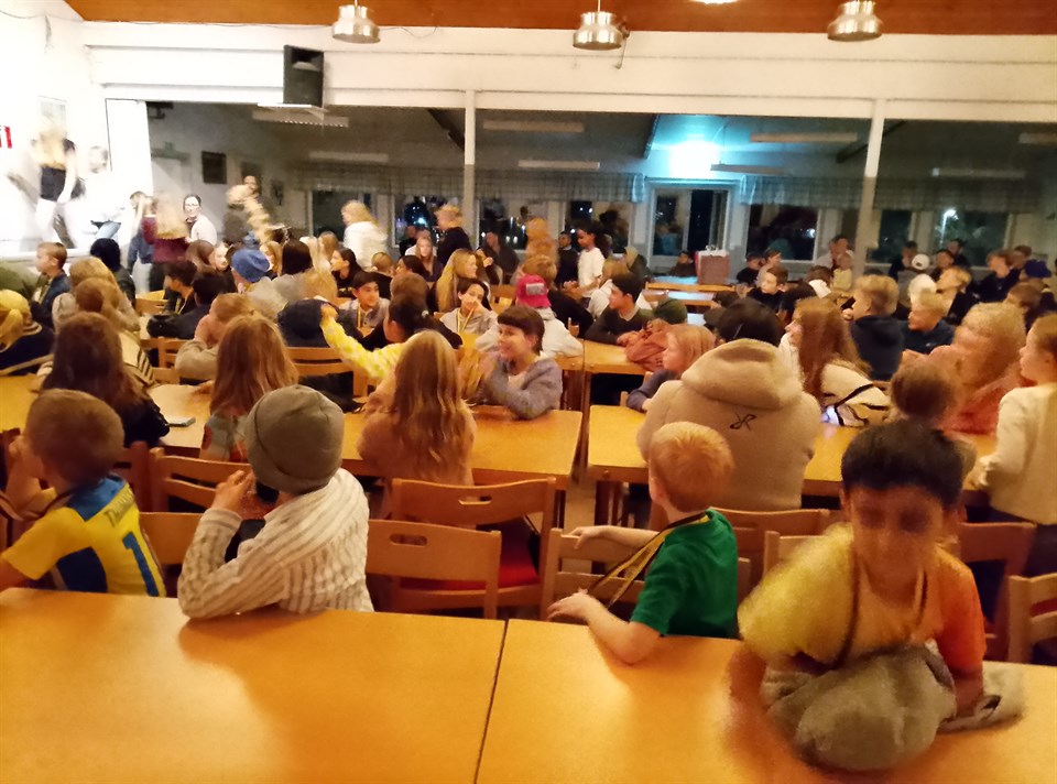 På bilden ovan ses förväntansfulla barn sitta och vänta på sin tur att ta emot sina medaljer.