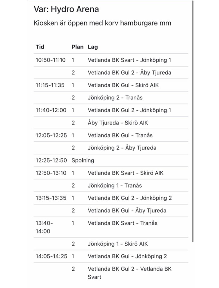 | Familje Festen. Skirö AIK Dam, Vetlanda BK. | 6 jan, 13:00 |