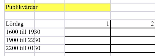 Vi saknar nu bara två personer till mittenpasset 19-22.30. Är det någon som kan ställa upp?