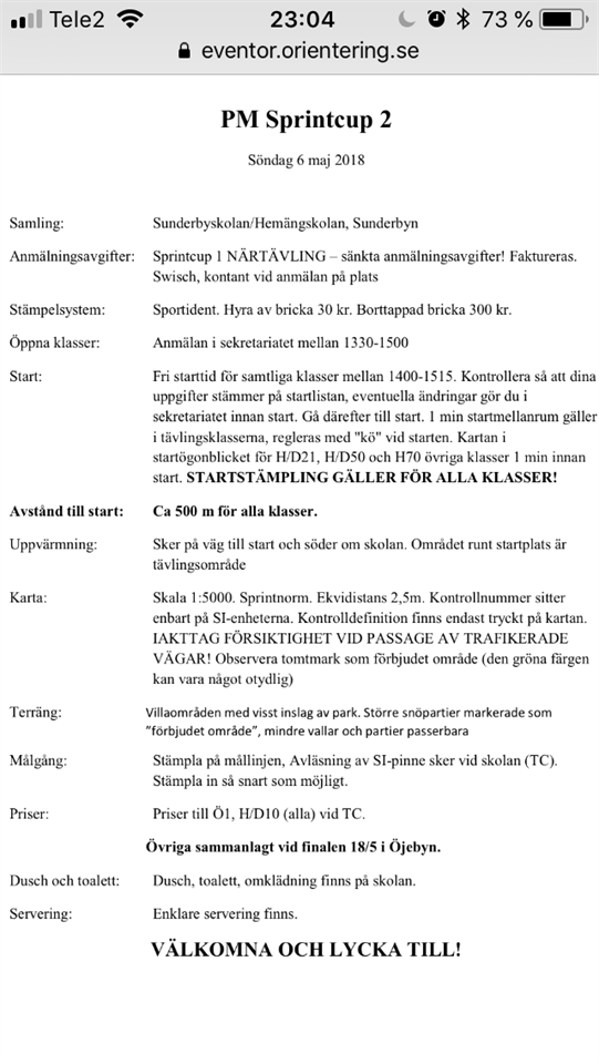 Nu är det dags för årets första etapp i sprintcupen. Start från 19.00 och anmälan öppnar 30min innan. Samling på Kulturskolan. Ledare från skogskul kommer att finnas på plats. Hoppas att vi ses! Mer info finns på https://eventor.orientering.se/Documents/Event/40773/1/PM (Stora gruppens onsdagsträning utgår. Vi satsar på sprintcup istället.) //Maria Kotten 6-7år 1 maj 2018 0kommentarer