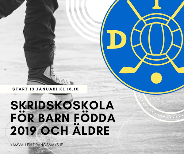 På måndag den 13 januari kl 18.10 så drar vi igång med skridskoskola på Drängsmarks IF för barn födda 2019 eller äldre.