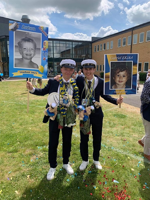 Smack smack smack! Stort grattis till våra grabbar i laget som dagen till ära tar studenten! På bild har en av våra utsända fotografer lyckats fånga Anton Kindbom och Gabriel Nyholm mitt i allt rabalder Utöver modellerna i bild tackar också Alex Larsson, Edwin Leksell och Ludvig Nord för sig i gymnasiet och trampar vidare mot ett vuxenliv på riktigt! Vi får se om våra fotografer lyckas leta reda på övriga för en bild. Återigen, ett stort grattis till er alla ifrån SIF-familjen!⚫⚫