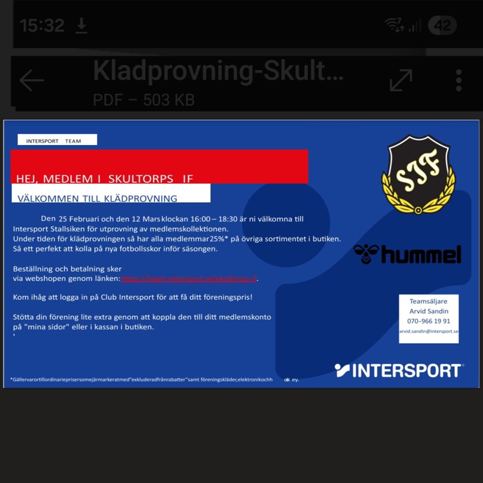 Klicka på bekräftelselänken i det mejl vi skickat dig för att börja ta emot uppdateringar från Skultorps IF P-15.