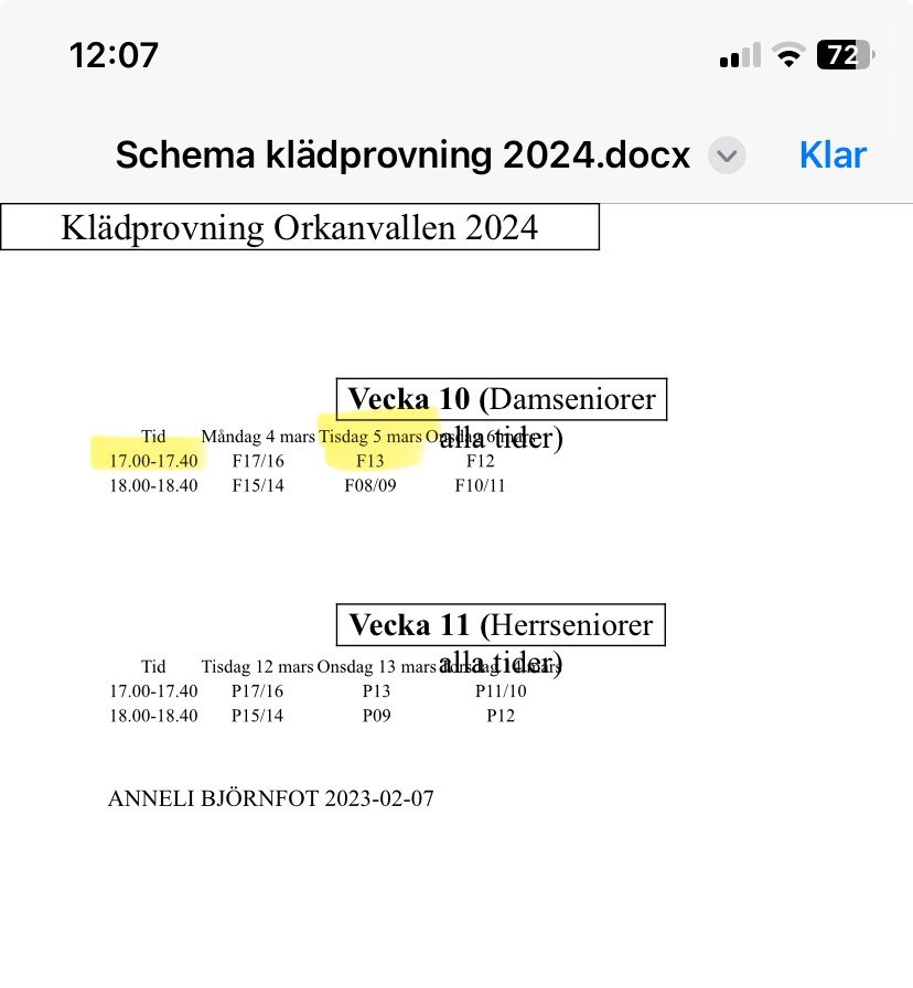 Hej! Nu är vårens träningstider spikade: Måndagar 17-18.30 (Bosse 1) och onsdagar 17.30-19 (Putte). Förhoppningsvis börjar dessa tider att gälla från v 14, men kan ändras beroende på när vi tillåts att gå på gräs. Påminner också om träning på Putteplan nästa torsdag 21/3 kl 17.30-18.30. Kallelse kommer! Ha det gott! F-13 13 mar 2024 0kommentarer