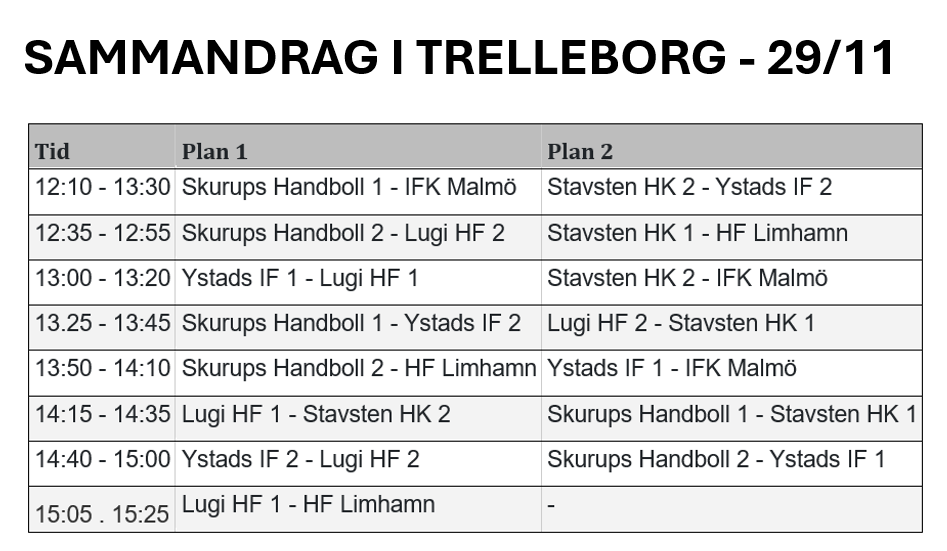 | Matcher, Sammandrag i Trelleborg (nytt datum) | 29 nov, 11:45 |