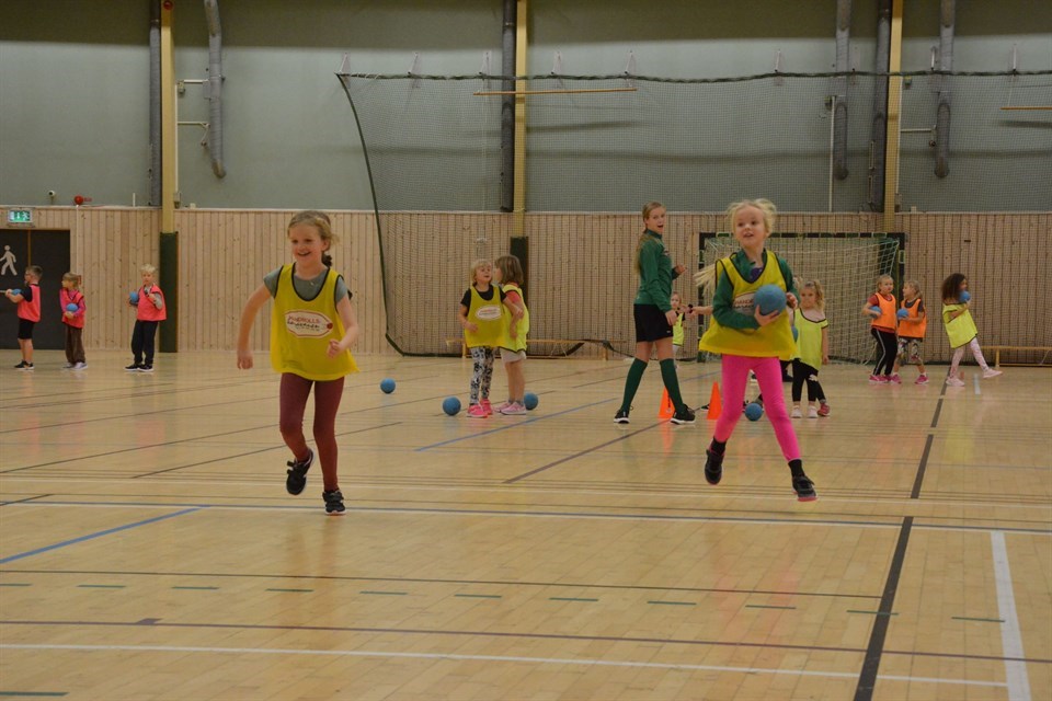 Måndag, Handbollsdag, Onsdag, Torsdag, Fredag, Lördag, Söndag, Måndag, Handbollsdag etc… Jag vet inte om mitt sätt att räkna upp veckans alla dagar fick något större genomslag på samlingen idag? 😊 Idag fick vi hjälp av Maja B’s storasyster Alva på träning så det flöt på ganska bra, tycker vi. Vi hade även några föräldrar/syskon som agerarde målvakter under skottövningarna. Det brukar vara populärt! Nästa gång vi kör s.k hinderbana skall vi/jag vara lite tydligare (visa) hur det skall gå till men samtidigt är det intressant och se hur de upplever att man skall ta sig förbi hinder. Vi fick se en del kreativa lösningar på ”plinten” där tanken var att man bara skulle gå runt 😊 Vi testade att köra lite passningar i ring – att säga namnet till den kompis man passade till. Svår övning. Vid sidan av att man skall bestämma sig till vem man skall passa, skall man även komma ihåg namnet på kompisen… Sen för att krångla till det ännu mer så la vi till att man skulle ta kompisen plats, till vilken man hade passat. För att vara första gången så gick det helt ok, tycker vi. Det här är svårt. Men vänta ett par gånger, sen kommer det gå som en dans… Vi avslutade, vår vana troget, med match. Den matchen som jag ”coachade” gick anfallsmässigt riktigt fint men vi måste slipa lite på försvaret 😉 Informationen från Hilda och Alva var att även ”deras” match gått riktigt bra. Nästa vecka är det Höstlov men det stoppar inte Handbollsskolan, vi tränar oförtröttligt vidare!!