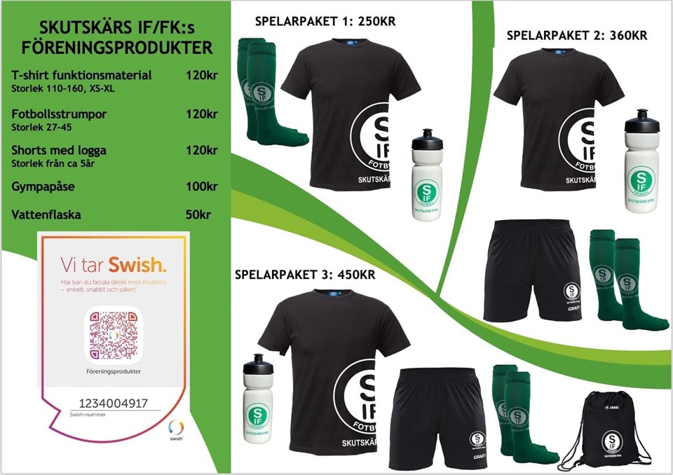 Från föreningen: Vill ni köpa fotbollsstrumpor, träningsshorts, t-shirt eller vattenflaska så har vi en del på lager så det är bara att säga till.