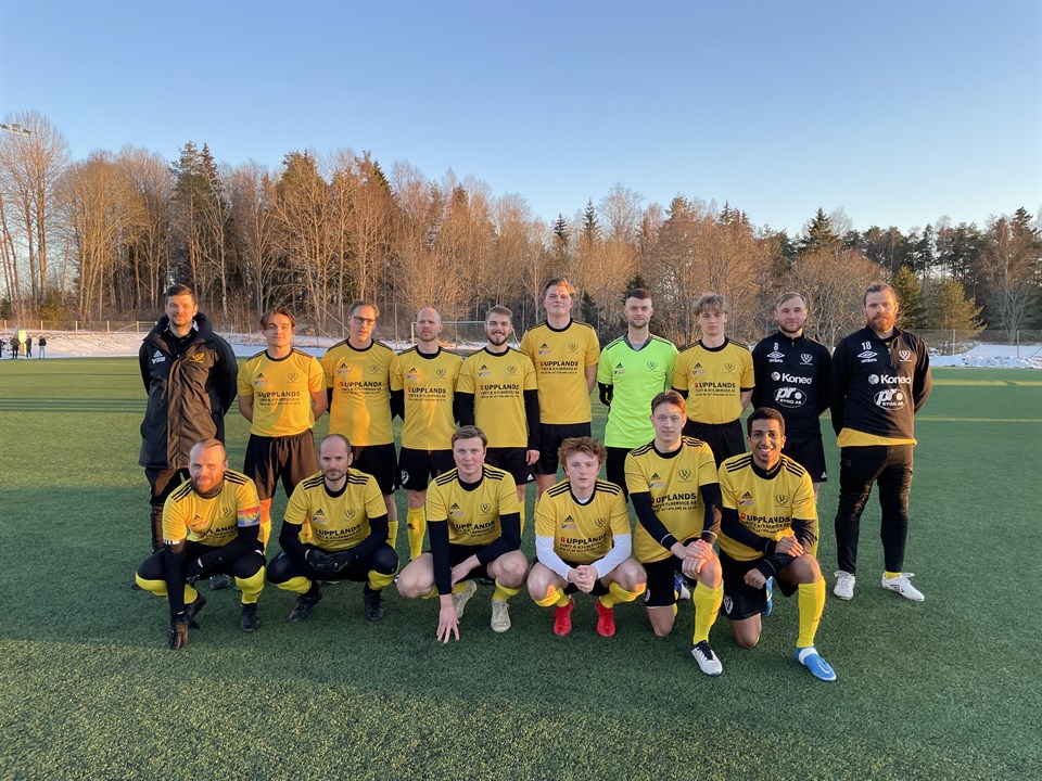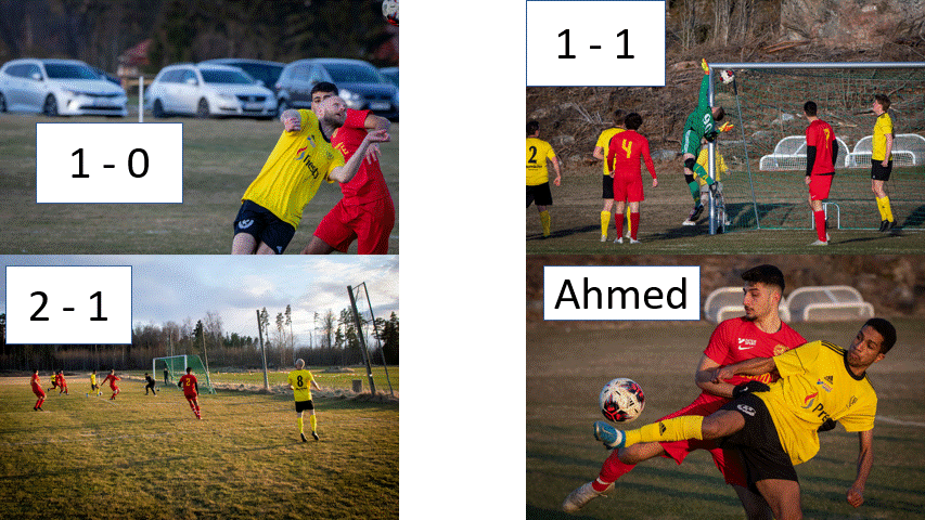 Tisdagskväll och dags för den riktiga hemmapremiären. Nu blev det inte riktigt som jag hade tänkt det utan det spel på Gärdet. Och Gärdet har nog varit jämnare än den var just nu. När det sedan kröp ner på 2-3 grader på termometern så var det ett stålbad, i alla fall för oss på sidan. Men det hindrade inte de tränare Hofberg att mönstra följande lag att jobbar för de gula färgerna. Mål Alex Backar Gurra, Ruben, Hampus och Dogge. Mittfält Leo, Rasken, Marta och Philip Forvard Trolle och Oskar A. Bänk Kåre, Ahmed, Danne och Oscar V Redan i den 2:a minuten lirar Gurra fram Philip till 1-0. Då tänkte publiken att det här kommer att bli en promenadseger. Men gästerna, Märsta syrianska FC ville annat och i den 11:e minuten stod lite på hälarna och på en nicklobb över Alex i målet så var det 1-1. Sen var det mycket missade passningar vilket får tillskrivas den ojämna planen. Men i den 40:e minuter kommer Philip runt på högerkanten och passar in till Ahmed som hade blivit inbytt. 2-1 var ett faktum. I den andra halvleken så trodde vi på sidan om att gästerna skulle tröttna, det var en känsla. Men det blev tvärtom, vi blev tröttare och tröttare och spelet kom längre och längre ner på vår planhalva. Men med gemensamma krafter så red vi ut stormen och gästerna fick en utvisning så kändes det att matchen var vår. Fortfarande obesegrade och i en haltande tabell innehavare av en tredjeplats. Nästa omgång var det upplagt för ett klassiskt derby mot Hinden, men den matcher är flyttad till den 17 maj. I stället blir nästa match mot Österlövsta hemma. Då kanske vi får komma upp på Movallen? Hur som helst så är du inbjuden.
