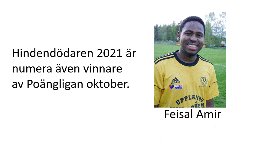 Det blev inte så många tillfällen att samla poäng, äras den som äras bör. Det blev 3 spelare som toppade oktober, så lotten fick avgöra vem som vinner priset. Dessa 3 var Feisal Amir, Nawir Seif och Sebastian Öhman. Lottdragningen som sköttes av mitt barnbarn Wärna, 2 år och omöjlig att påverka, utföll att det blev Feisal som vinner priset. Grattis säger vi. På årsfesten kommer priset för totalvinnaren att delas ut. Sportchefen säger att han har en överraskning på lut....?