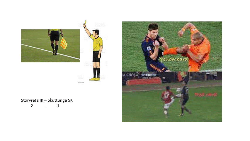 Det tär inte bara på en gammal reporter att hinna med 3 matcher på mindre än en vecka. De gula kom lite till korta på konstgräset i Storvreta. Just konstgräset var inte riktigt vår melodi, ty där var de unga pojkarna från Storvreta lite mer i sitt esse. Tufft spel som ibland blev lite väl bryskt som domaren ibland inte riktigt hade koll på, då han var tvungen läxa upp sin linjedomare som oavsett om han vinkade eller inte vinkade så var det inte till belåtenhet för huvuddomaren. Första halvleken avlöper med en ledning för Storvreta med 1-0. Men efter tränare Hofberg morskat upp gänget i pausen kom man ut och gjorde en bättre inledning av halvleken än den första. Vilket också resulterade i en kvittering efter 5 minuter då Philip sätt bollen på ett inspel från Gurra. 1-1. Dock kommer nådastöten en kvart senare då hemmalaget åter tar ledningen med 2-1. Resten av halvleken noterar vi en lång rad med gula kort åt alla håll samt en straffräddning av mål-Nicke som för övrigt gjorde en helgjuten insats mot sina gamla lagkamrater. Nya tag på tisdag då vi möte Apollon hemma.