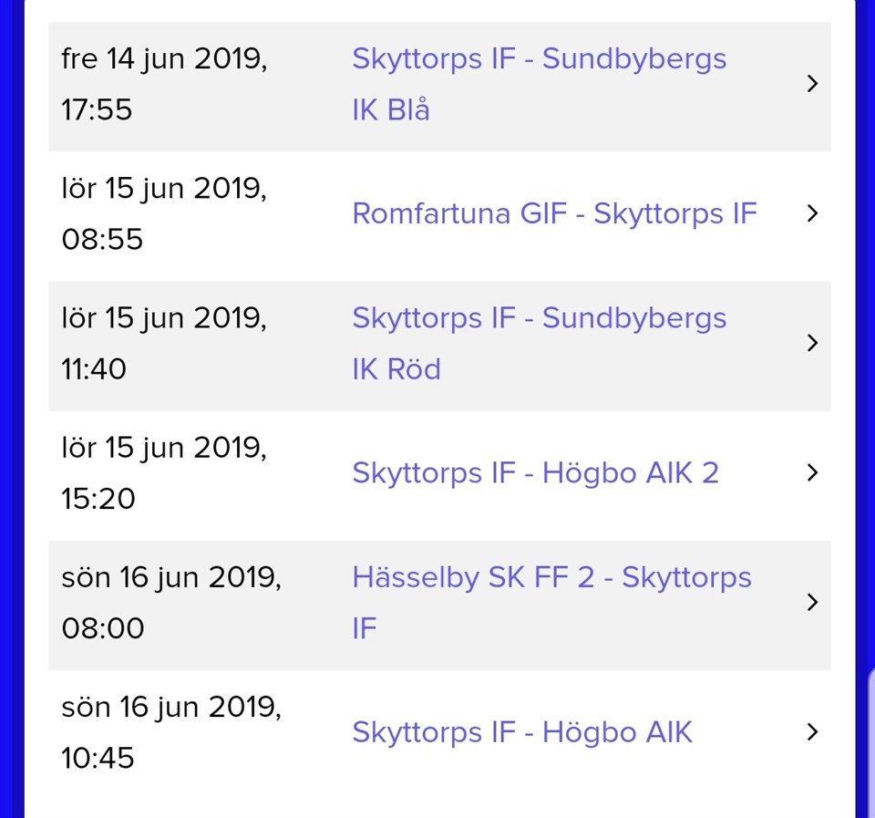 Ändrade träningstider v 23 med anledning av röd dag och 2 matcher. Måndag 3 juni 17.45-18.45 - träning Onsdag 5 juni match mot Iron borta. Fredag 7 juni 14-15.30 - träning Söndag 9 juni match hemma mot Gimo P-13 2 jun 2019 2kommentarer