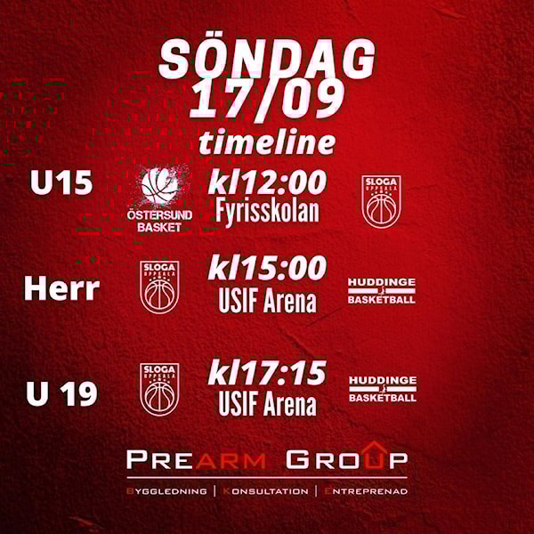 17/09 Sloga Uppsala Basket c´e odigrati 3 utakmice u 3 razlicite kategorije.