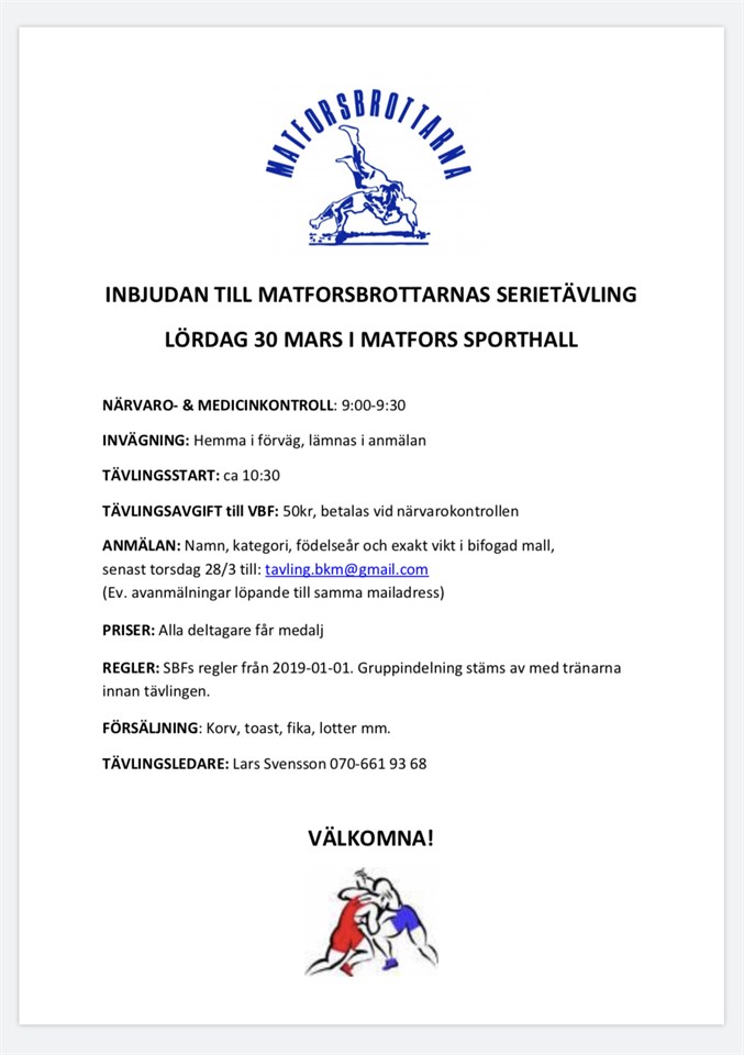 Då är det dags för oss att anordna säsongens sista serietävling. Kallelse kommer separat - svara på den om er brottare kommer att delta eller inte. Samma vecka sker invägning i samband med träning & gemensam anmälan sker av ledare. Arbetsschema kommer sättas upp i kuvösen, så där skriver man upp sig på. Småbrottarna 3 mar 2019 0kommentarer