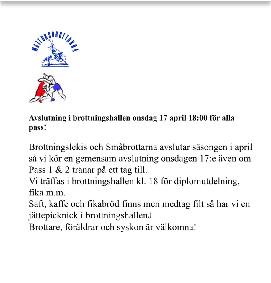 Välkommen på avslutning Småbrottarna 3 apr 2019 0kommentarer
