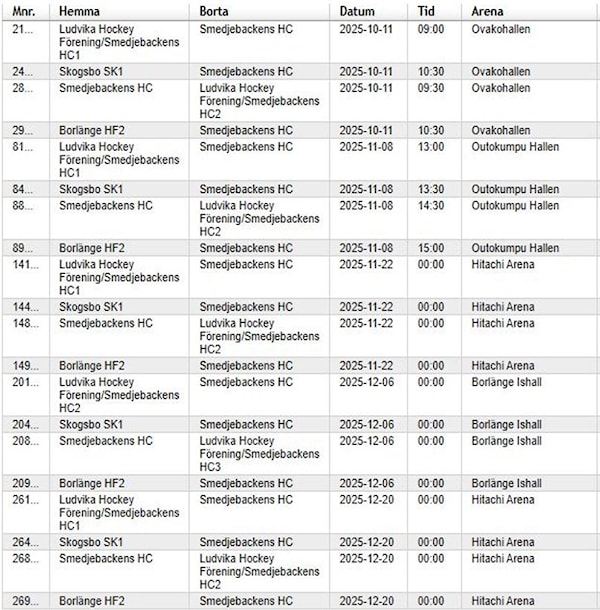 I bilden ser ni spelschemat fram till jul. Blir resor till Skogsbo, Borlänge och Ludvika denna sväng. Kommer ett nytt schema efter nyår.
