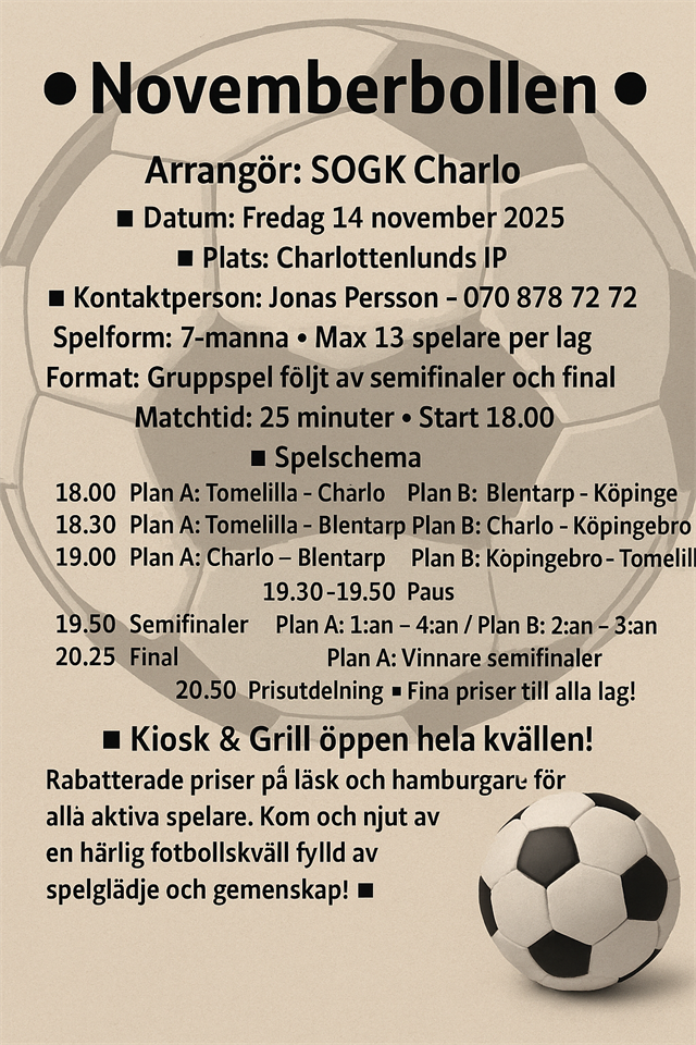 | Klubbstugan bokad | 14 nov, 15:00 |