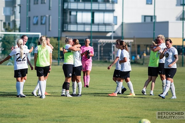 Men vi börjar bra,redan iden fjärde minuten kan vi göra 1-0 genom Moa Arlebo, och vi fortsätter vara det bättre laget. Efter ca halva första halvleken kommer Älta mer och mer in i matchen. Kanske inte att de skapar superfarliga målchanser, men de är där och nosar i varje fall och stör oss ganska rejält. Men vi får i varje fall sista ordet i halvleken då Isa Fredriksson gör sitt första av två mål i matchen på tilläggstid och det var riktigt skönt att ta med sig in i paus.
