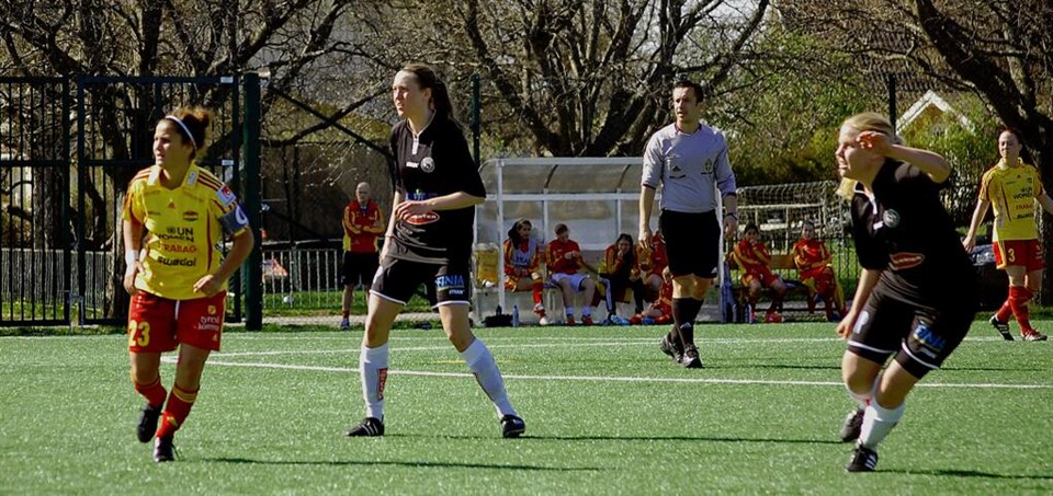 Bortamatchen mot nykomlingen Boo FF slutade med seger 4-1 (2-0) för ÖSK Söders damer. Sabina Håkansson, som startade sin fotbollskarriär i Boo, angav tonen och gjorde 1-0 och 3-0 samt spelade fram till minst ett av de andra målen. Skönt att se att målen börjar trilla in där. Matchen i övrigt var en relativt stabil insats av Söderdamerna utan att vara strålande. "En dag på jobbet" är väl något som kan tas fram att säga om det hela. Boo var ett bollskickligt lag med fint passningsspel men utan att kunna skapa några riktigt farliga målchanser. Deras reduceringsmål kom till efter hörna, där måste vi vara lite tuffare till matcherna framöver. Planen som var ganska liten, kändes så i varje fall, blev efter det skyfall som hedrade oss med ett besök under matchen, ganska snabb och svårspelad. Bollen drog iväg ordentligt ett par gånger då vi var på väg framåt. Men som sagt, en stabil seger efter en lång med välplanerad bussresa, det var vad det var. Fortfarande obesegrade och trea i serien på sju poäng, lika många poäng som ettan Smedby AIS och tvåan IFK Nyköping (med Örebrobekantingen Fredrik "Honken" Holmquist som fotbollsansvarig hos seriefavoriterna), bara lite färre mål gjorda. Men vi kör på, nu väntar två raka hemmamatcher, svåra sådana mot Enskede IK den 10/5 och mot Smedby AIS den 17/5. Bäst i dag var när den assisterande domaren sa följande till Fläkten: "Nummer 13, nummer 13, kan du inte sätta upp håret?" Hur f...n tänkte han där, inick det i hans uppgift eller? Jaja, det bjöd oss på ett riktigt gott skratt, så vi stannar väl vid det, det var ju faktiskt skitkul! Målen: 15:e min 0-1 Sabina Håkansson 20:e min 0-2 Sara Sandberg 54:e min 0-3 Sabina Håkansson 67:e min 1-3 Hanna Snarberg 72:e min 1-4 Hanna Åbom Länkar Matchfakta na.se Tabellen eyravallen.se Boo FF:s hemsida Tack alla för idag, från vår danske busschaufför som körde lika mjukt som en god dansk remouladsås (nu gillar jag inte sån sås, men om jag gjort det vore det så), till medföljande supporters och spelare, på´t igen bara! //Jonas