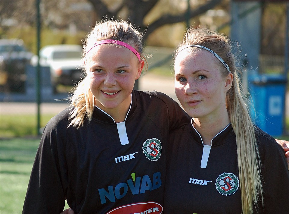 (på bilden målskyttarna Isa Olofsson-Lindberg och Sara Sandberg) På ett soligt Pettersbergs IP tog vi i dag emot Tyresö DFF. Ett lag som vi förra året systerligt delade poängen med. I dagens match var dock de för dagen nydressade Söderbönorna numret större matchen i genom. Som alla vet vinns ju matcher av det lag som gör mest mål, allltså fler än motståndarna. Hade fotboll varit en bedömningssport hade vi nog kunnat vunnit på teknisk knockout redan i första ronden. Ja, vi var riktigt bra idag, alla deltagare i truppen! Läs mer om det fotbollsmässiga på den eminenta bloggen eyravallen.se där även bilden till nyheten kommer i från! Och ni som tyckte tröjorna var lite stora, det är för att vi ska ha utrymme att växa som lag! Själv tycker jag att dom är skitsnygga! //Jonas