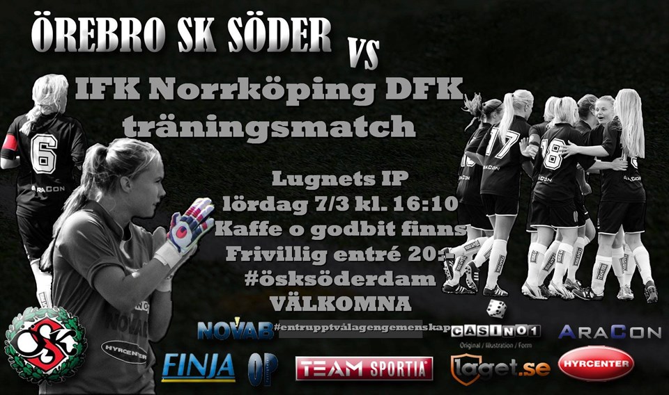 Första "hemmamatchen" på riktigt fast på fel plats för ÖSK Söder dams eleganta krigare sker lördag kl. 16:10 på Lugnets IP konstgräs. För motståndet står div.1-laget IFK Norrköping DFK. Ett lag som har varit uppe och nosat på Elitettan tidigare år och som kommer att ställlas mot Smedby AIS i årets div.1-serie då Smedby flytats över till en annan serie, sköna derbyn i Norrköping 2015 alltså! Söder samlar ihop det som finns tillhands, vilket inte behöver innebära något dåligt, men så här i influensatider är det som det är, och vi har följande spelare tillhands vad vi vet just nu (ändringar kan ju förekomma) Men det är ännu tidigt på säsongen, och prestationen är viktigare än resultaten! Vi hoppas ju som vanligt att så många som möjligt pallrar sig i väg till Lugnets IP lagom till 16:10 och köper sig en värmande kopp kaffe och stöttar Söderdamerna i förberedelserna till #sässong2015! #frivilligentre20sek Välkomna! #ösksöderdam #försäsong2015 #entrupptvålagengemenskap