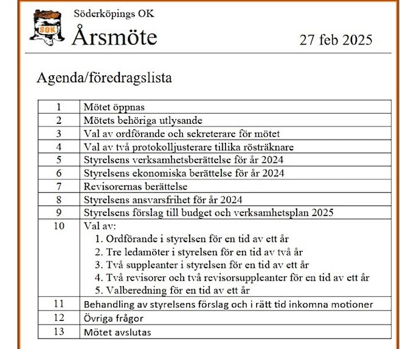 Söderköpings OK kallar alla sin amedlemmar till årsmöte torsdag den 27/2 kl 19:00 i klubbstugans kansli.