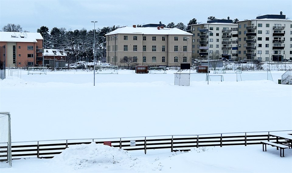 Kommunen har stängt av konstgräset på Skogsängens IP måndagen 27 november. Det ligger snö på konstgräset. P19-20 27 nov 2023 0kommentarer