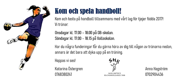 Nya spelare får testa på tre tillfällen kostnadsfritt. Sollefteå handboll är ansluten till fritidskortet!