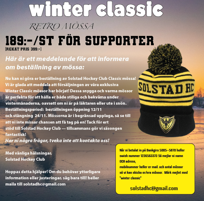 Fyll i din e-postadress för gratis uppdateringar om Solstad Hockey Club A-lag
