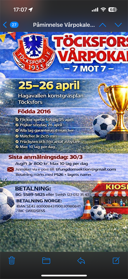 Klicka på bekräftelselänken i det mejl vi skickat dig för att börja ta emot uppdateringar från Sommarro IF F16.