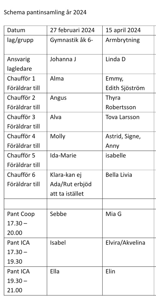 Hej! Snart är det dags för suif att panta och nästa gång är 15/4 jag skickar en bild på schemat och står ens namn och man ej kan så får man byta med någon. Mer info om detta kommer närmare. Armbrytning yngre gruppen 11 apr 2024 0kommentarer