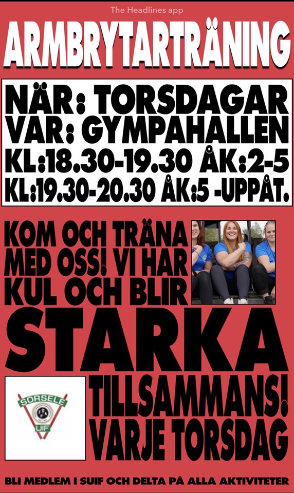 Hej! Nästa vecka på torsdagens träning kommer tidningen och vill skriva om armbrytningen och ta lite bilder och intervjua några armbrytare. Vill man inte synas i bild meddela detta till tränare Linda så ordnar vi det på plats. 💪😃 Armbrytning yngre gruppen 21 sep 2023 1kommentar