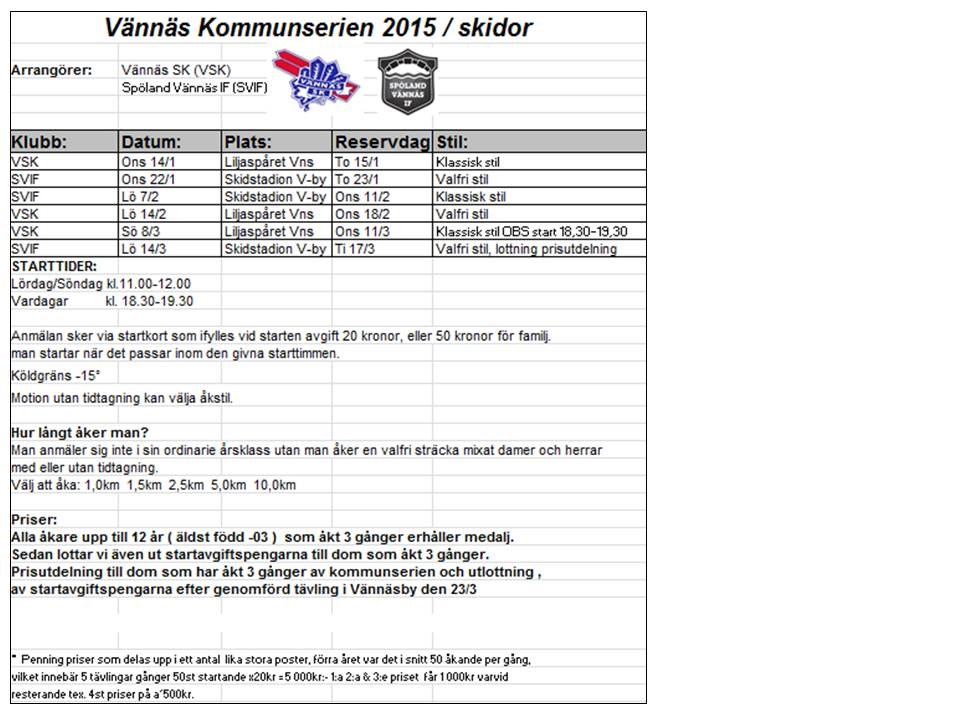 • Torsdag 19/3 18.15: Avslutning Skidlek/tekniklek Vännäsby!