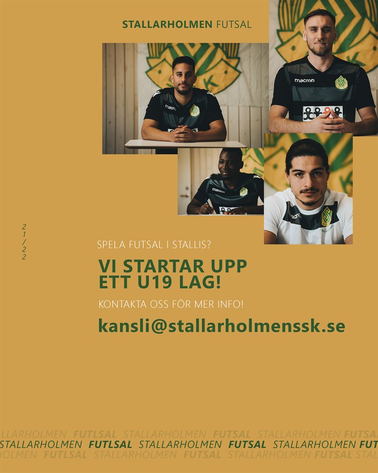 Nu är det dags att presentera första nyheten för kommande vintern. SSK FUTSAL U19 Är du kille i åldern 16-19år och intresserad av att tillhöra detta projekt så tveka inte att kontakta oss med följande information. - namn - personnummer - telefonnummer - mailadress Så kontaktar vi er när det är dags för uppstartsmöte samt eventuella provträningar. Ta chansen att bli vår framtida futsalstjärna ihop med våra befintliga i SFL-truppen. 💛💚💛💚 Kontakta oss på mailen kansli@stallarholmenssk.se //Futsalsektionen A-lag Herrar 18 aug 2021 0kommentarer